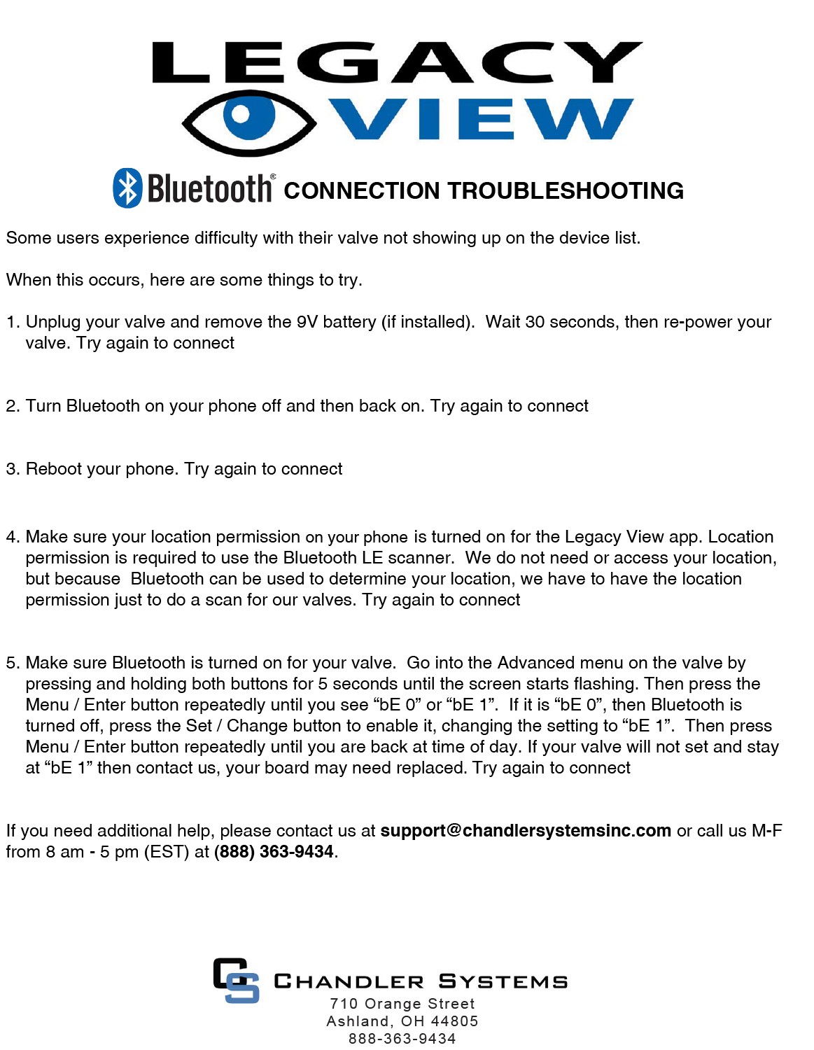 Legacy View Bluetooth Connection Troubleshooting