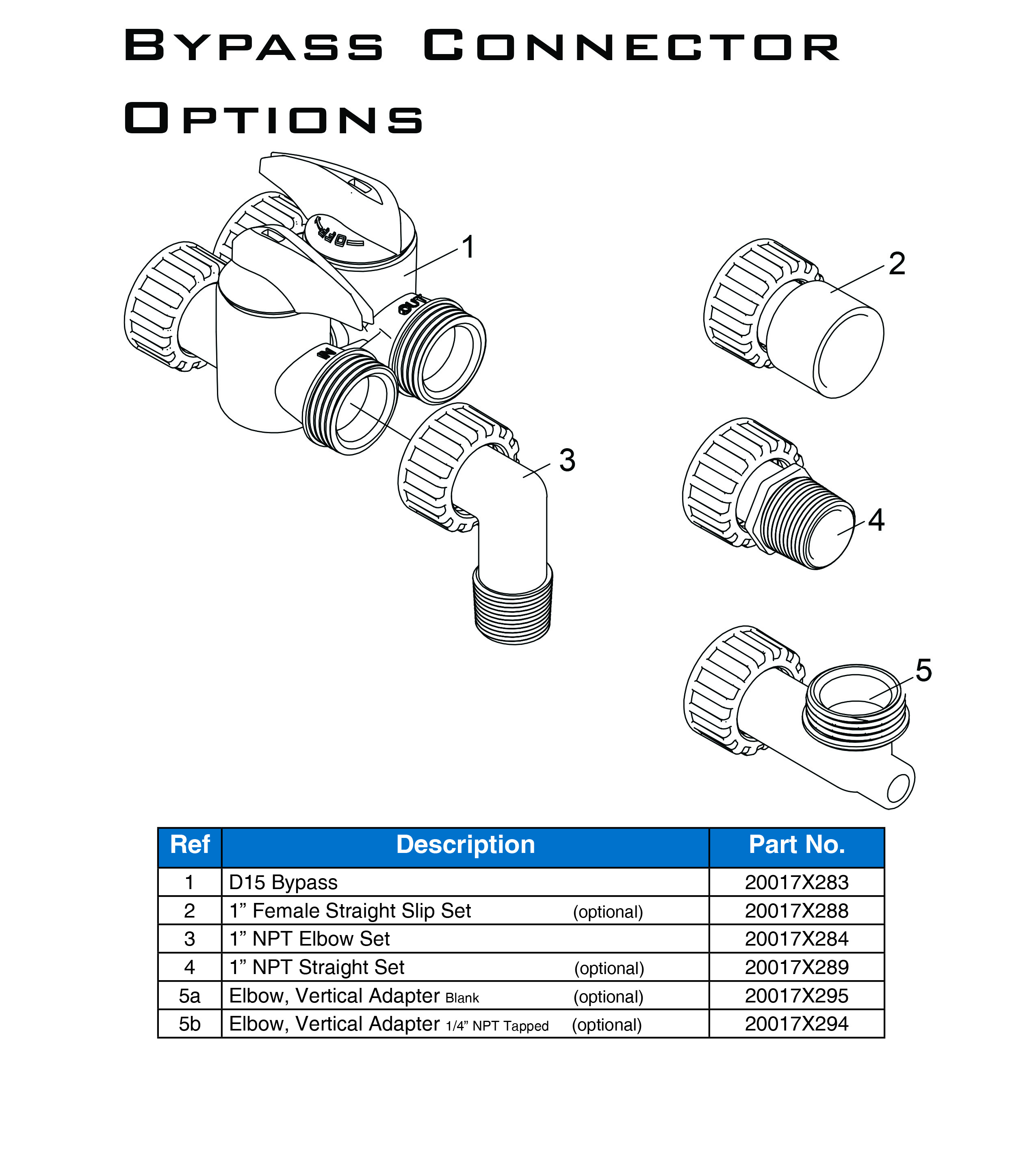 - Plastic bypass with 1" MNPT plastic connectors